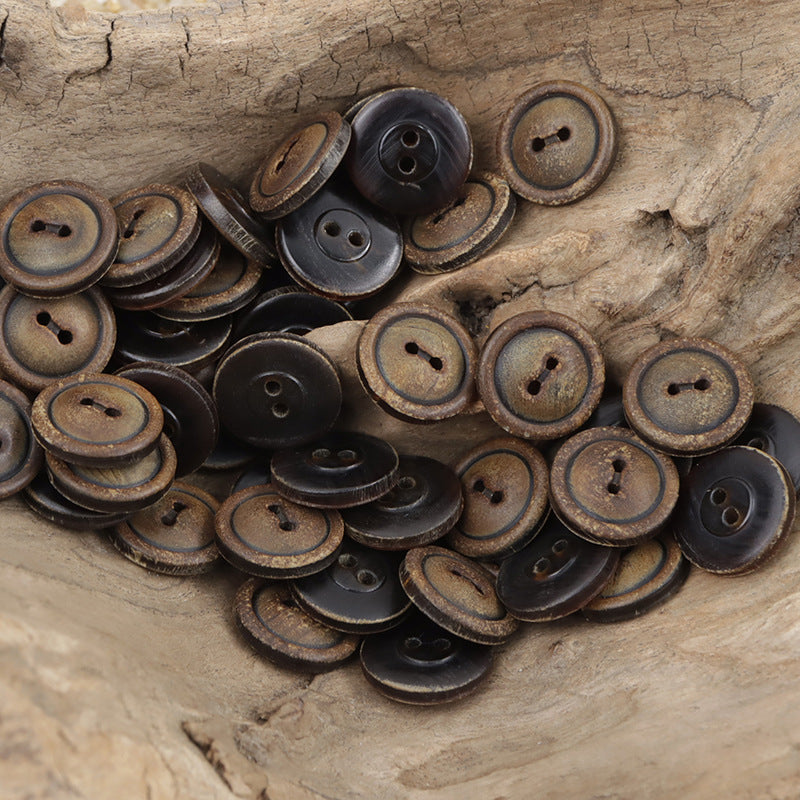 15mm Винтидж Кафяви на Цвят Изгорено Кафе Двудупкови Натурални Копчета от Рог 10 бр.