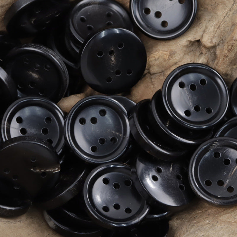 Кръгли шестдупкови естествени черни копчета от рог за кожени якета 6 бр.