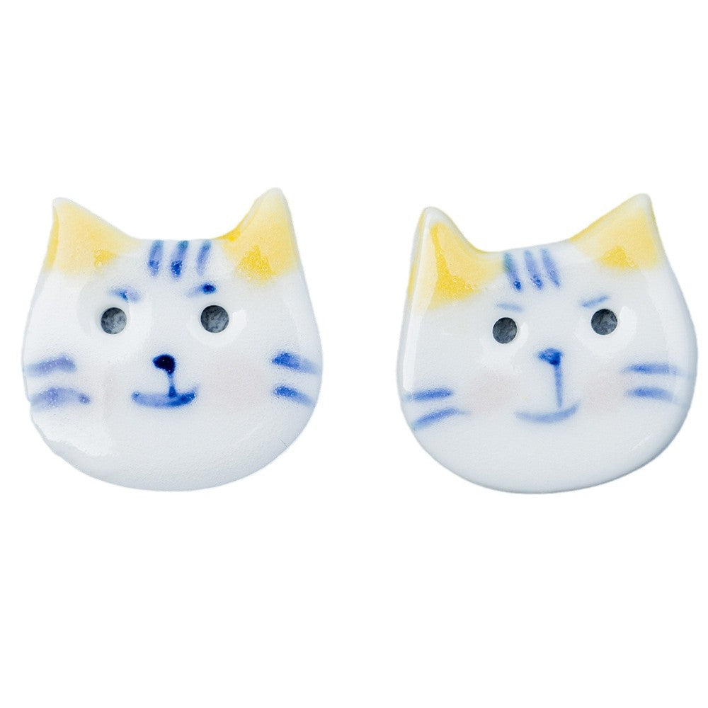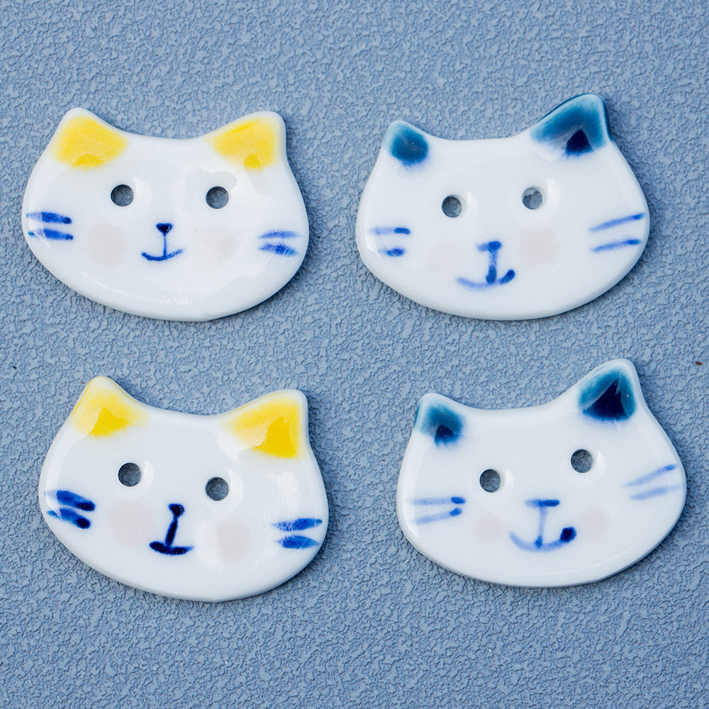 22mm Ръчно рисуван синьо-бял керамичен бутон с остри уши на котка за декорация Направи си сам 10 бр.