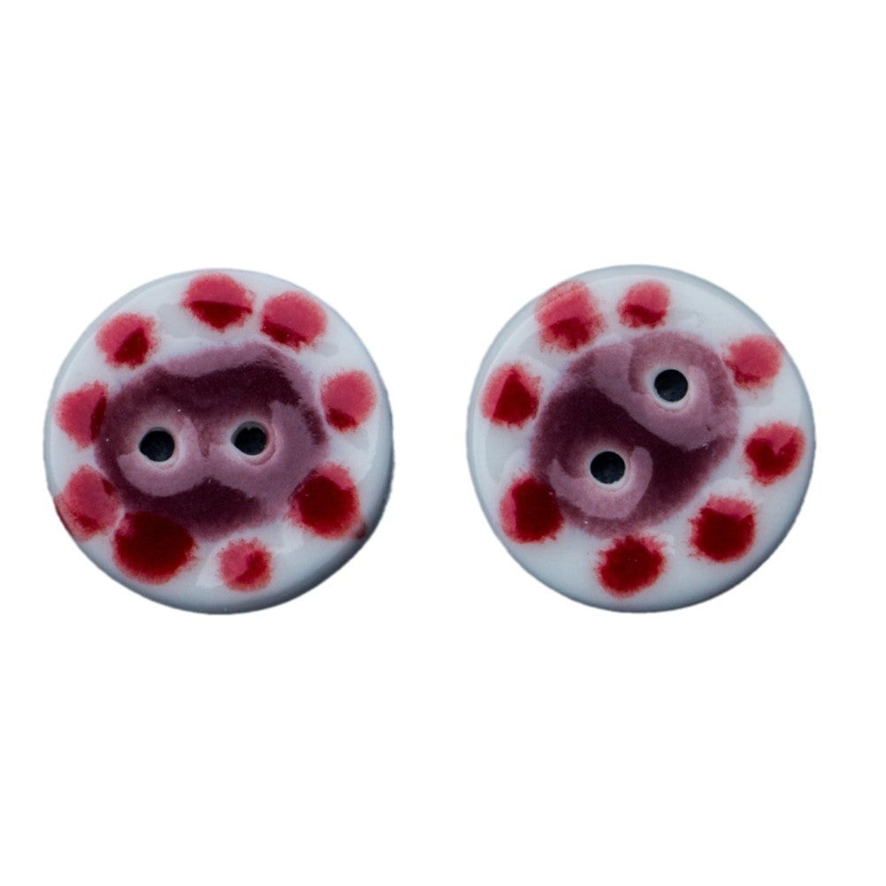 19.5mm червени точки кръгли 2-отвора ръчно изработени керамични копчета 10 бр.