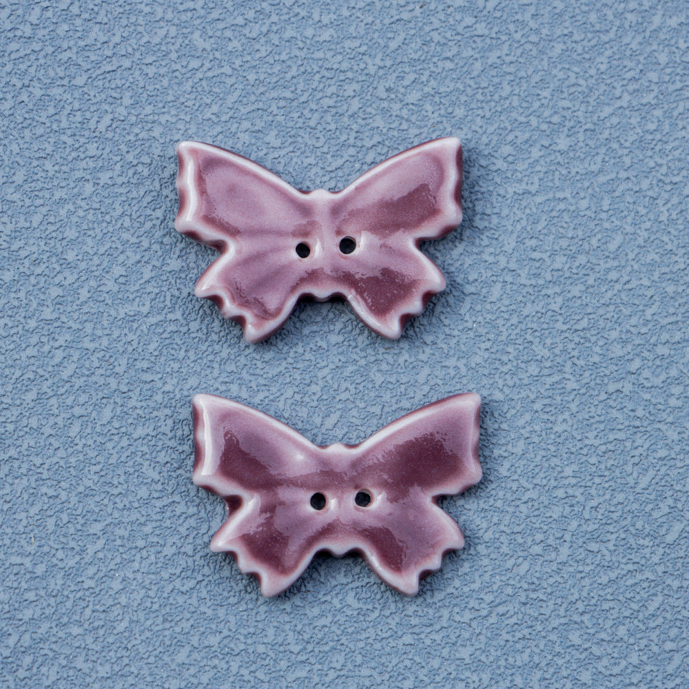 24mm Винтидж Лилаво-Червена Пеперуда 2-Дупки Ръчно Изработени Керамични Копчета 6 бр.
