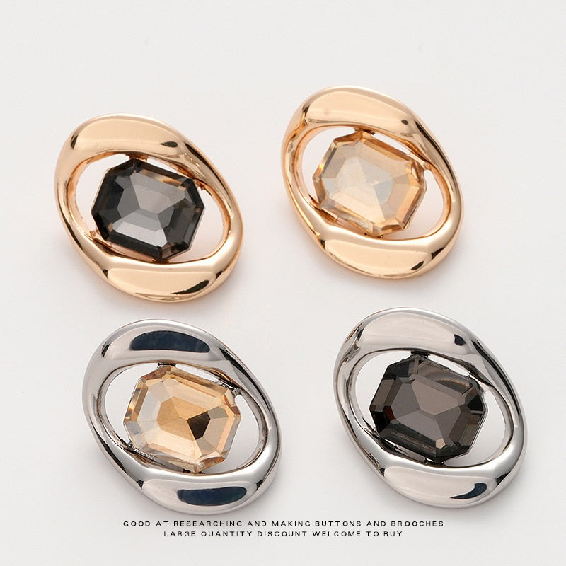 18-23mm Моден овален метален бутон с диаманти 10 бр.