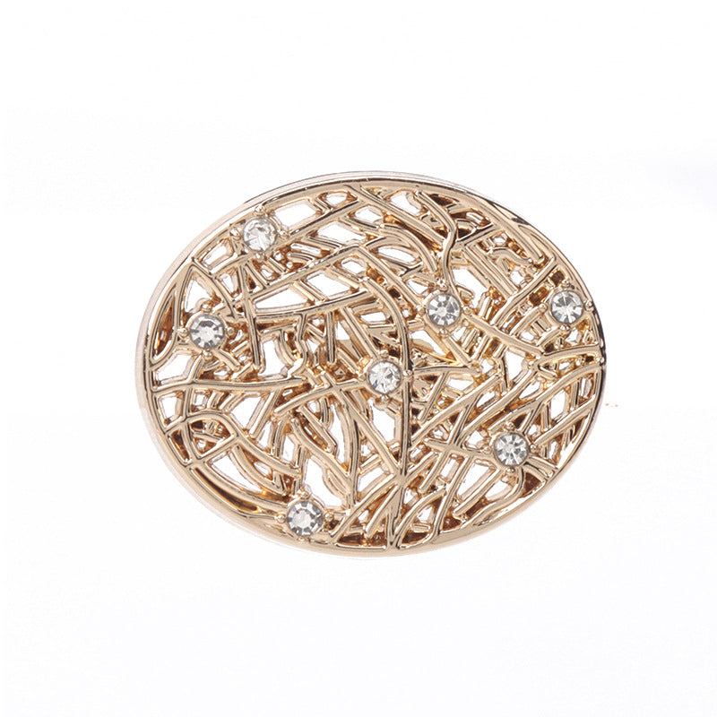 Кръгли златисти метални копчета с кристали и двойна кръгла шарка 6 бр.