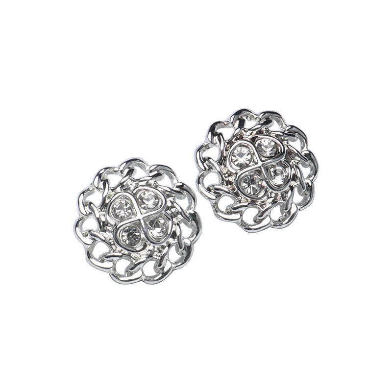 22mm ярко сребърни бутони с метална основа, инкрустирани с кристали във форма на цвете, 12 броя