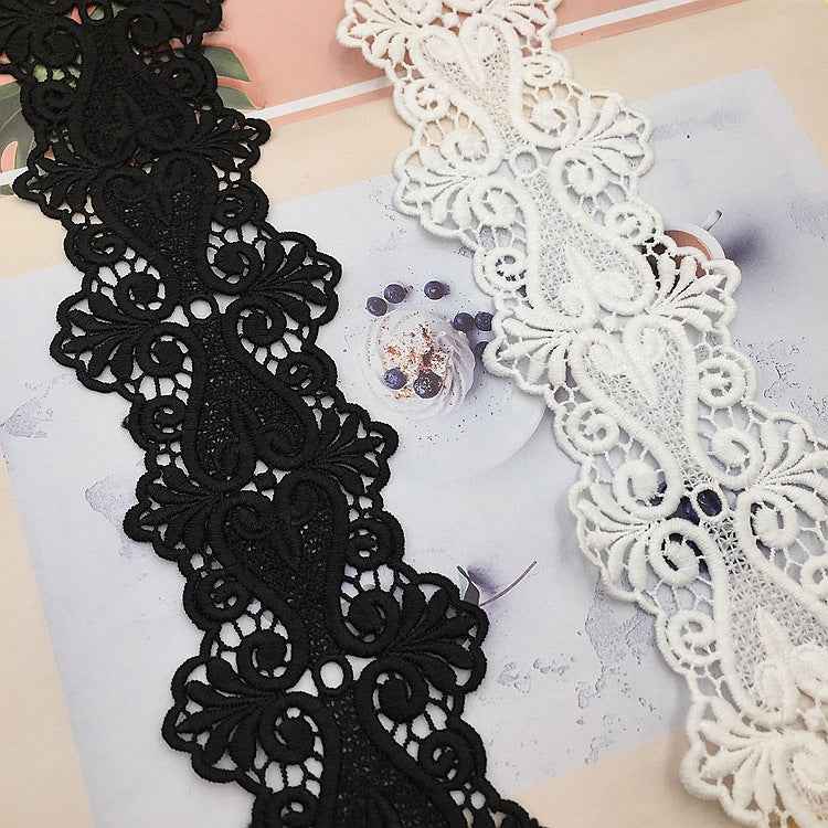 8cm бял черен млечен копринен водоразтворим бродиран дантелен кант 15 ярда