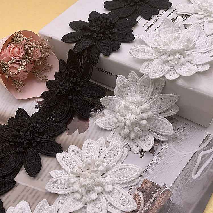 8.5cm водоразтворим млечен коприна 3D флорален бродиран дантелен кант 5 ярда