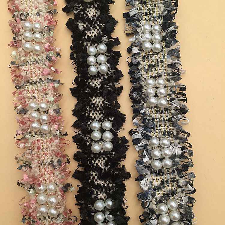 3cm полиестерна ресни с акценти от изкуствени перли – 10 ярда