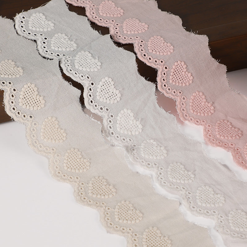 40mm памучна дантелена лента с бродерия на кухо сърце 16 ярда