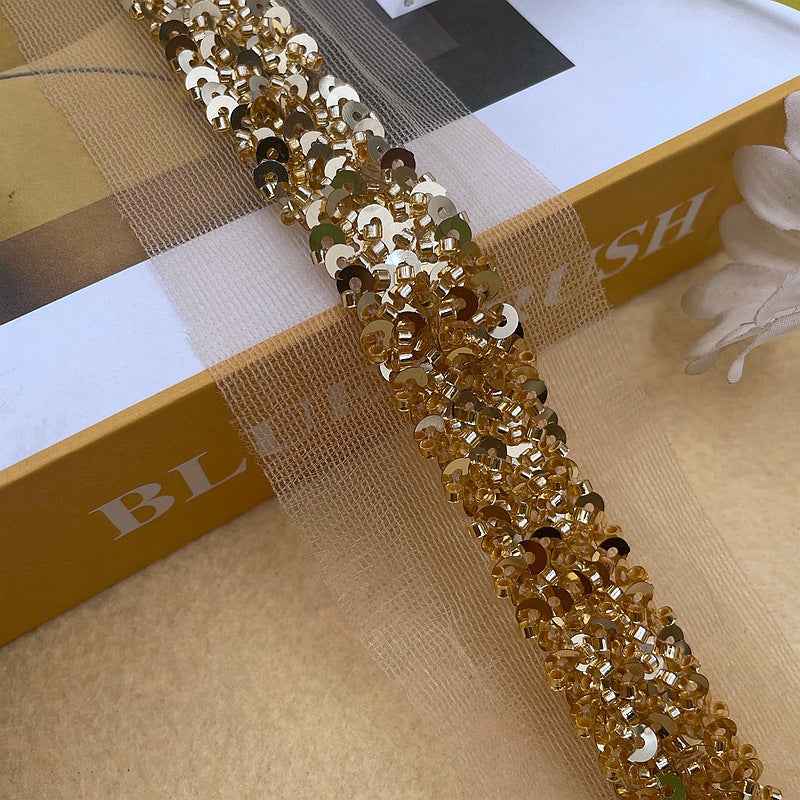 Луксозен 3.5cm златен мрежест мънистен пайетен дантелен кант – 5 ярда