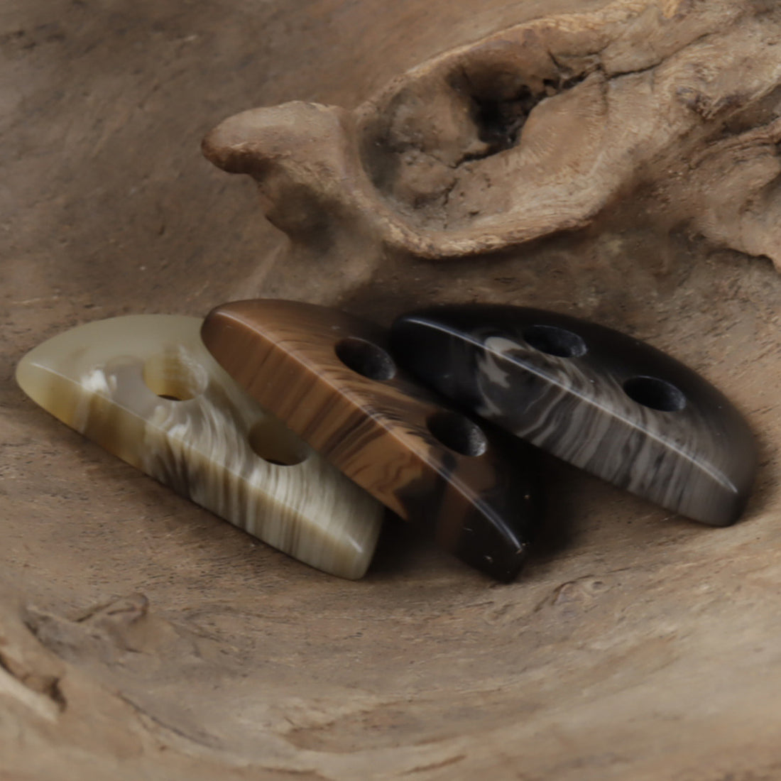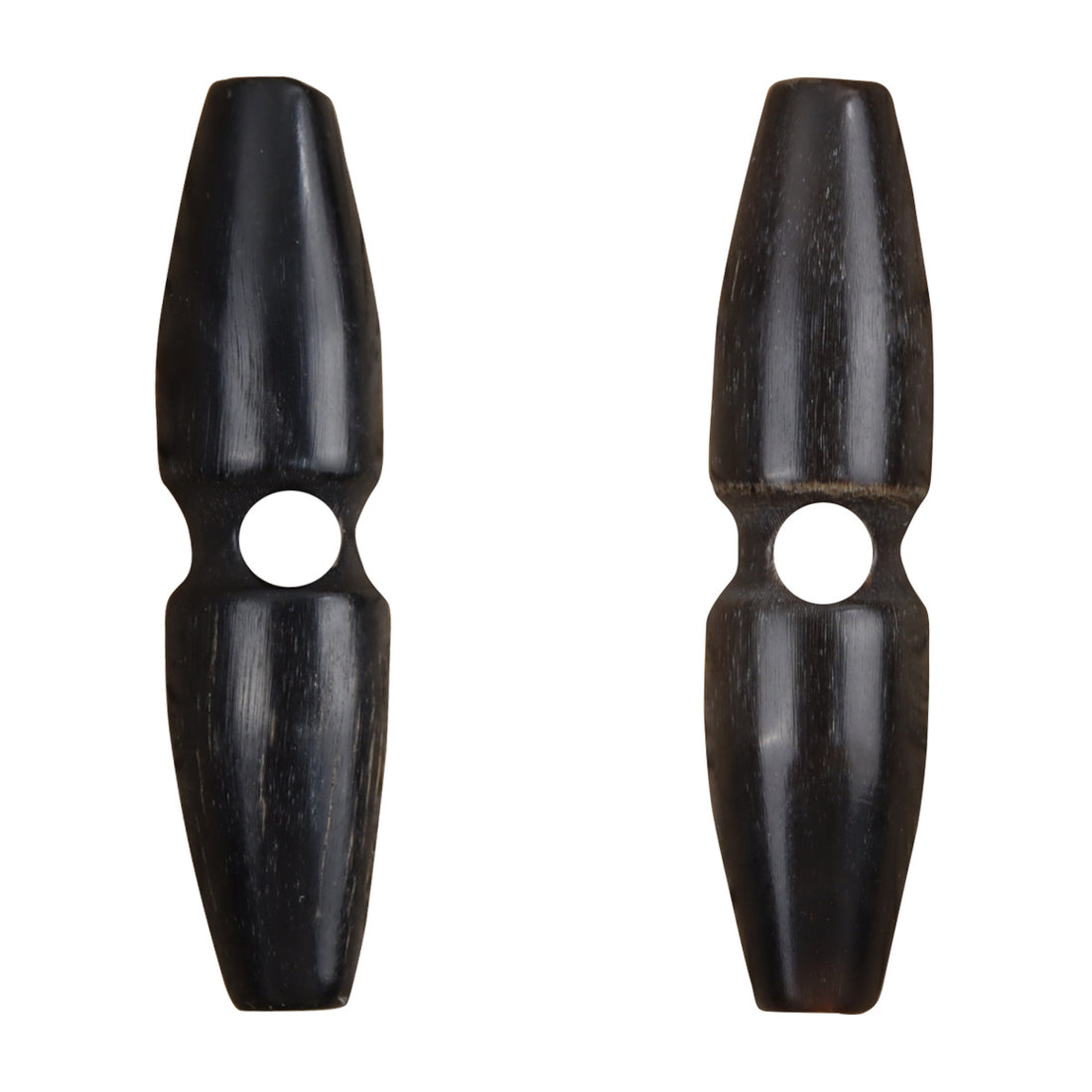 60mm продълговати черни и кафяви естествени копчета от рог с един отвор, 10 бр.