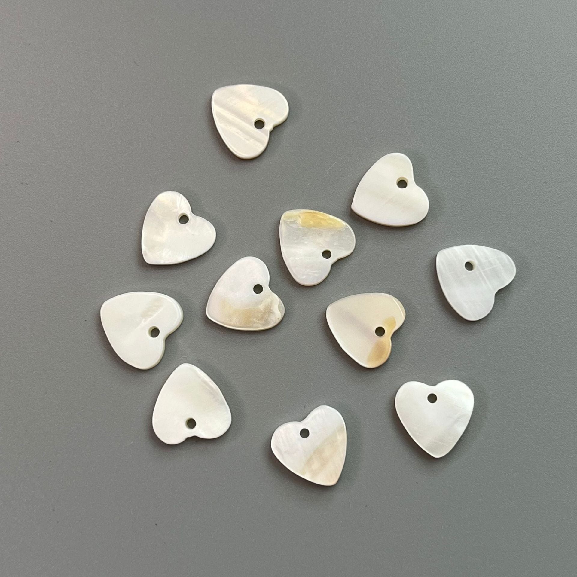 10/18/22 мм чисто бели копчета от черупка във формата на сърце, пакет от 30 броя