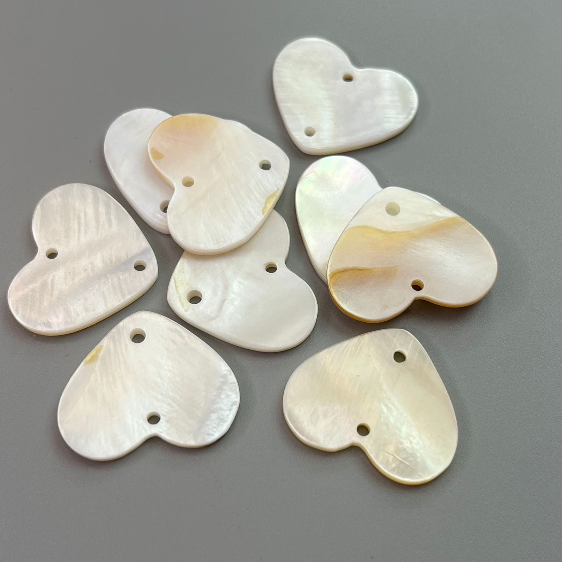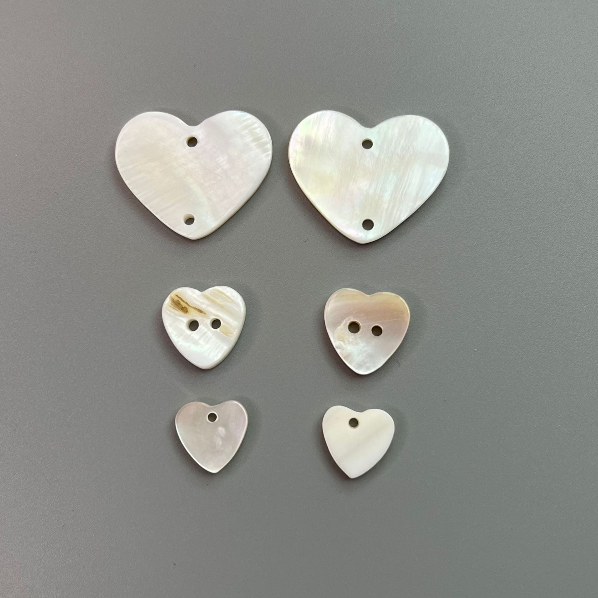 10/18/22 мм чисто бели копчета с форма на сърце от черупка с единични или двойни отвори, опаковка от 30 бр.