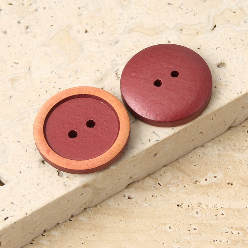 Естествената дървесна текстура се прокрадва през боята, добавяйки нотка рустикална елегантност. Дизайнът с два отвора ги прави лесни за зашиване върху различни тъкани. Тези копчета са подходящи за широк спектър от приложения, от облекло като ризи, рокли и якета до аксесоари и декорации за дома.