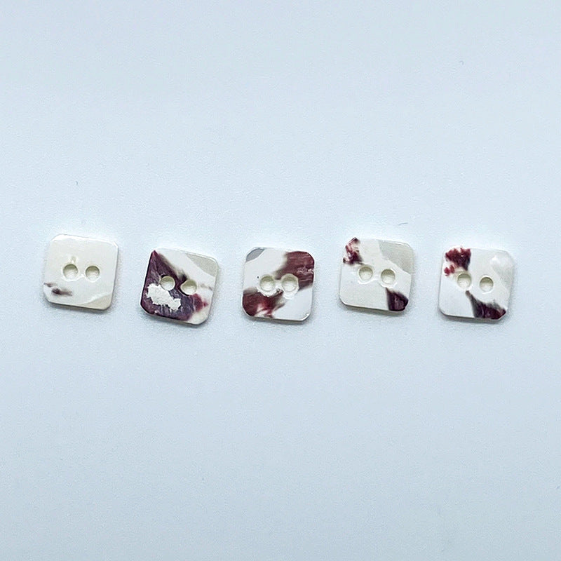 11.5mm квадратни естествени копчета от конски миди с две дупки, 12 бр.