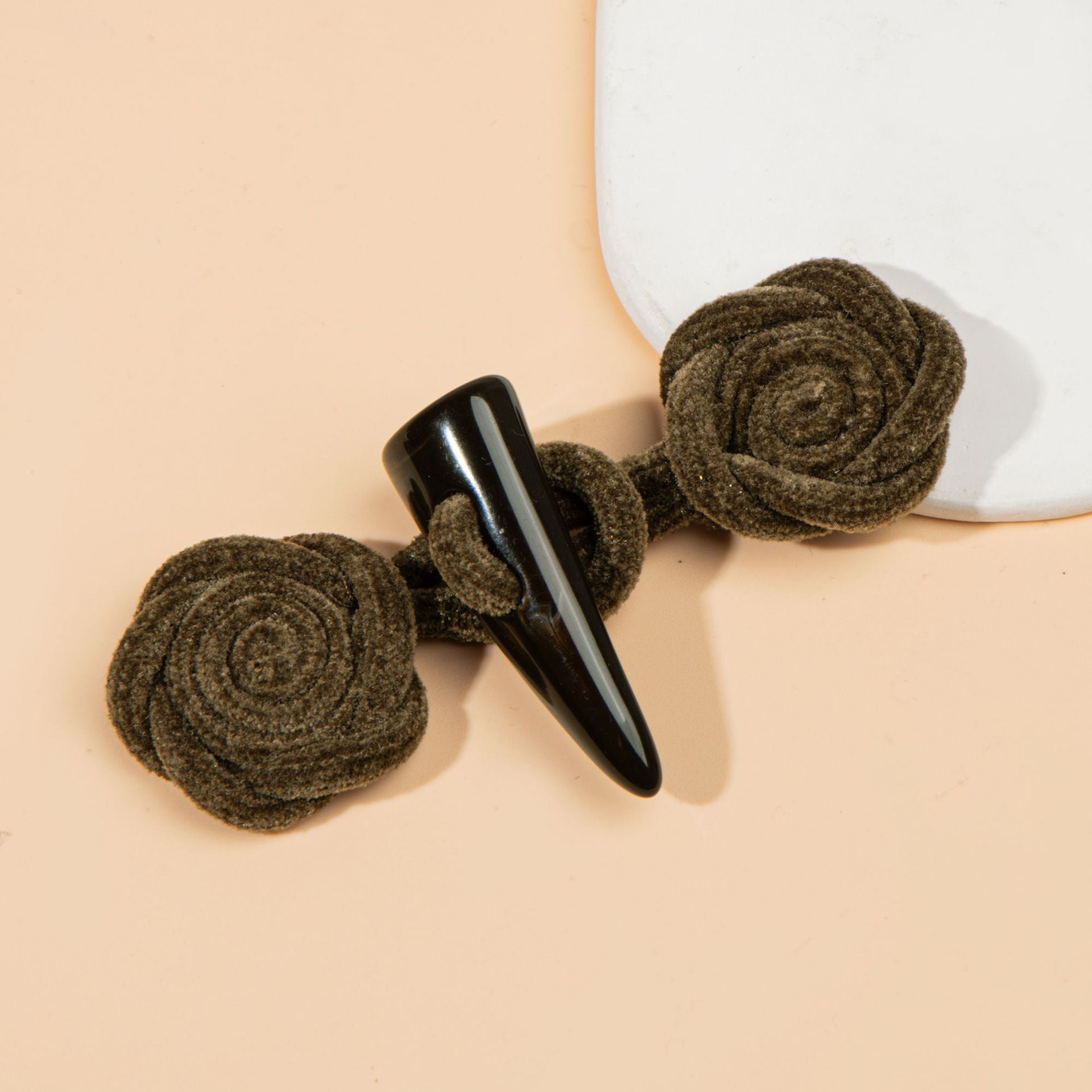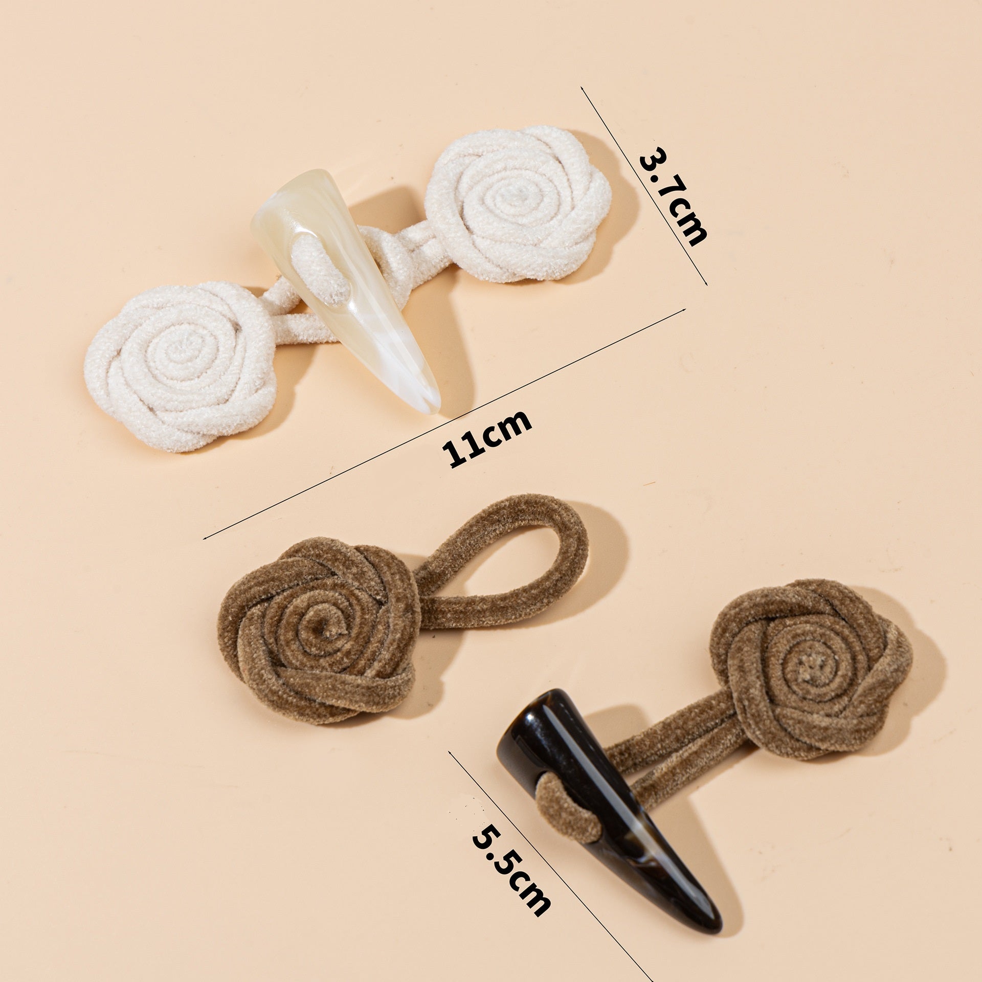 Тези 11-сантиметрови копчета за шиене са уникално и очарователно допълнение към всяко облекло или аксесоар. Копчетата са изработени от мек и текстуриран кордурой във формата на деликатна роза, добавяйки романтичен и женствен акцент. Богатата материя им придава луксозно усещане и красива визуална привлекателност. Комбинирани със смолист детайл от биволски рог, те съчетават естествени елементи с изискано майсторство. Смолистият рог осигурява земен и рустикален контраст на деликатната роза, създавайки хармонично съчетание на стилове. Тези копчета не са само декоративни, но и функционални, с надежден механизъм за шиене. Те са перфектни за украса на палта, якета или дори чанти, позволявайки ви да направите модно изявление. Независимо дали се обличате за специален повод или добавяте щипка елегантност към ежедневното си облекло, тези копчета със сигурност ще подобрят цялостния вид и ще направят тоалета ви да изпъкне с отличителния си чар.