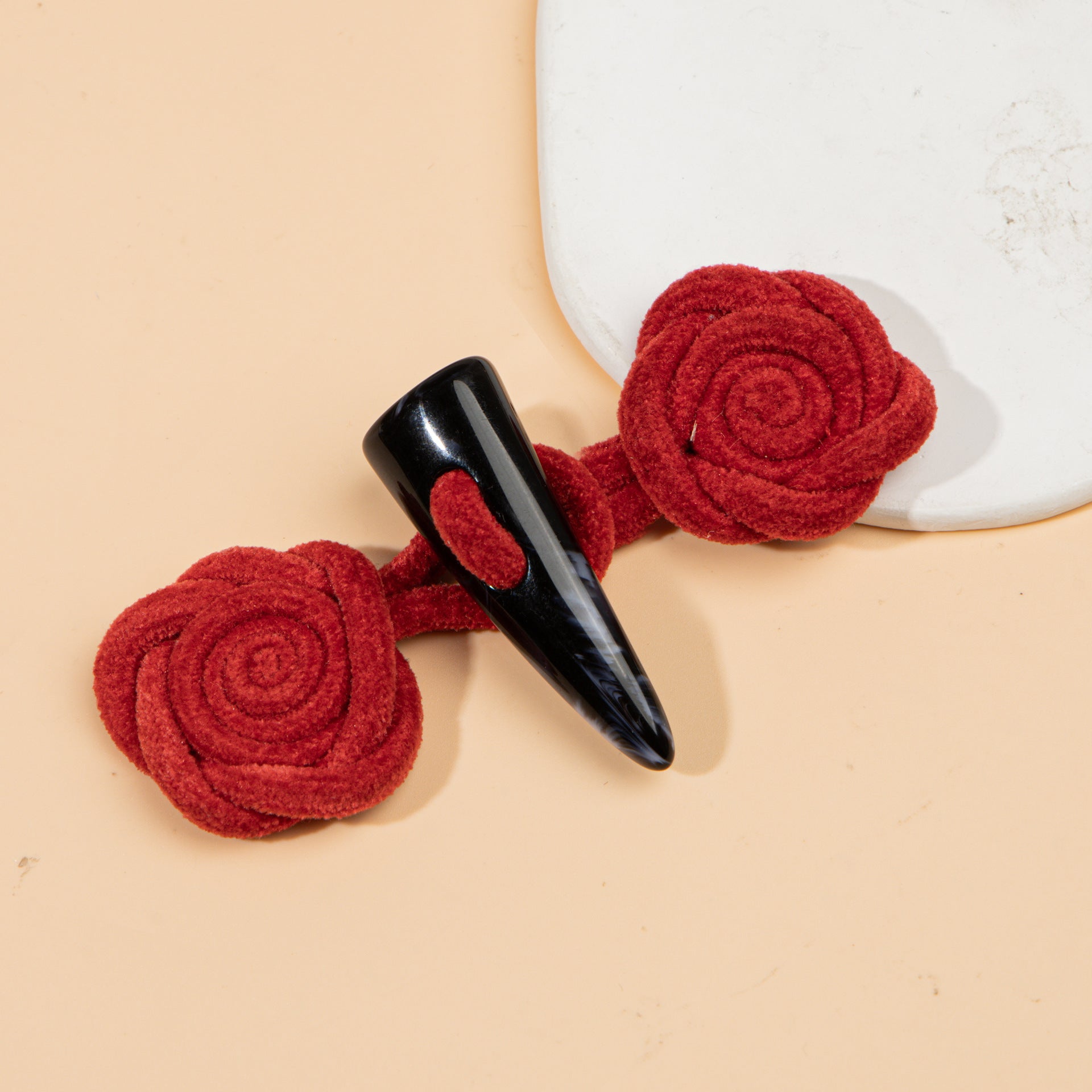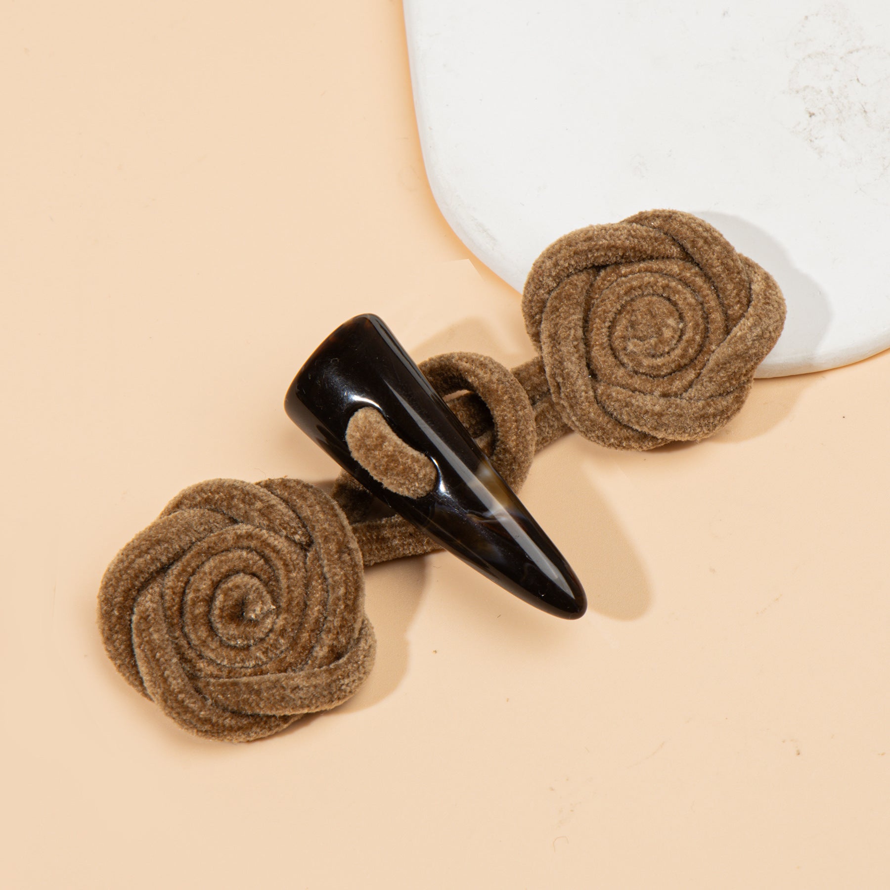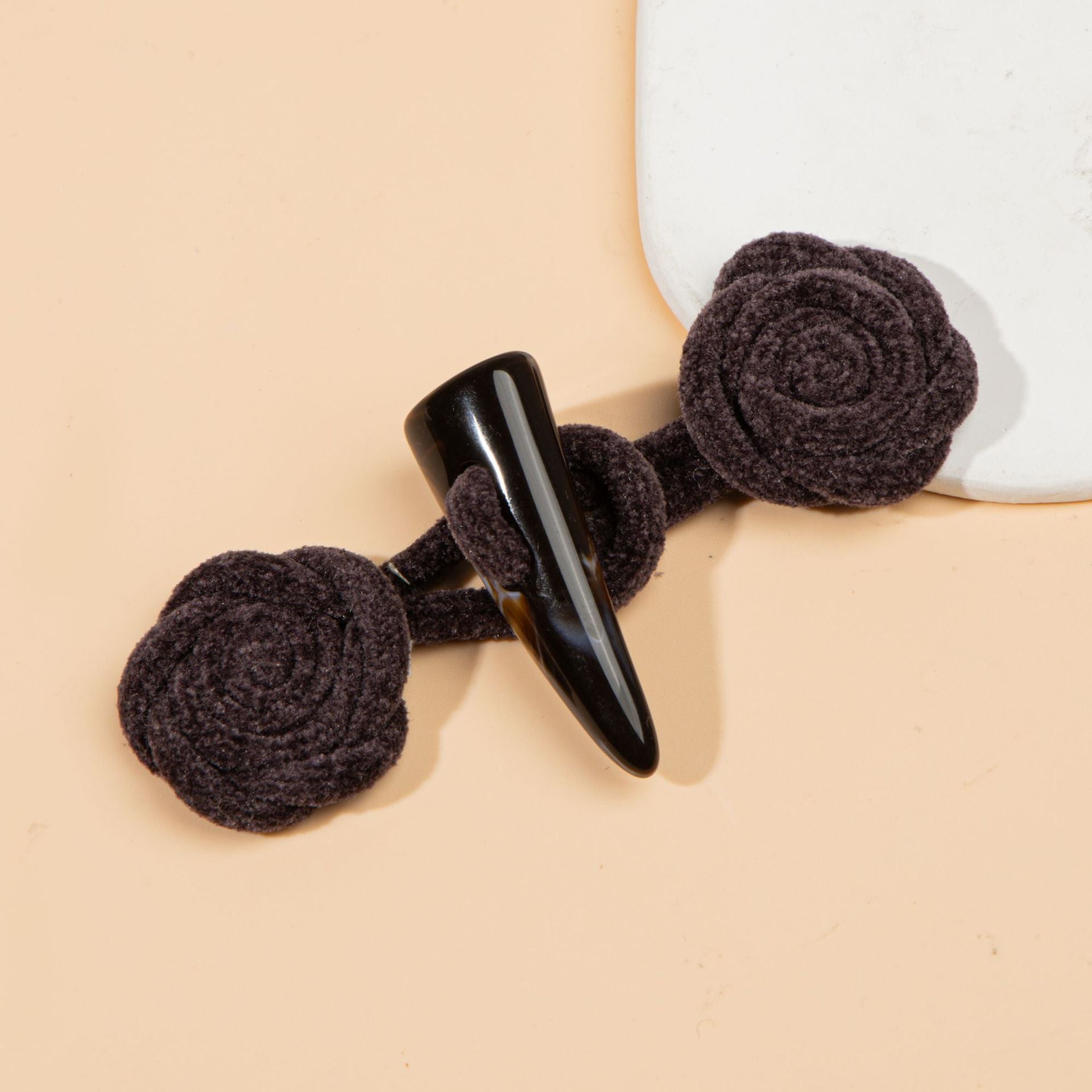 11-сантиметрови копчета за шиене с кордурой роза и смолист биволски рог - Щипка романтична елегантност, 4 бр.