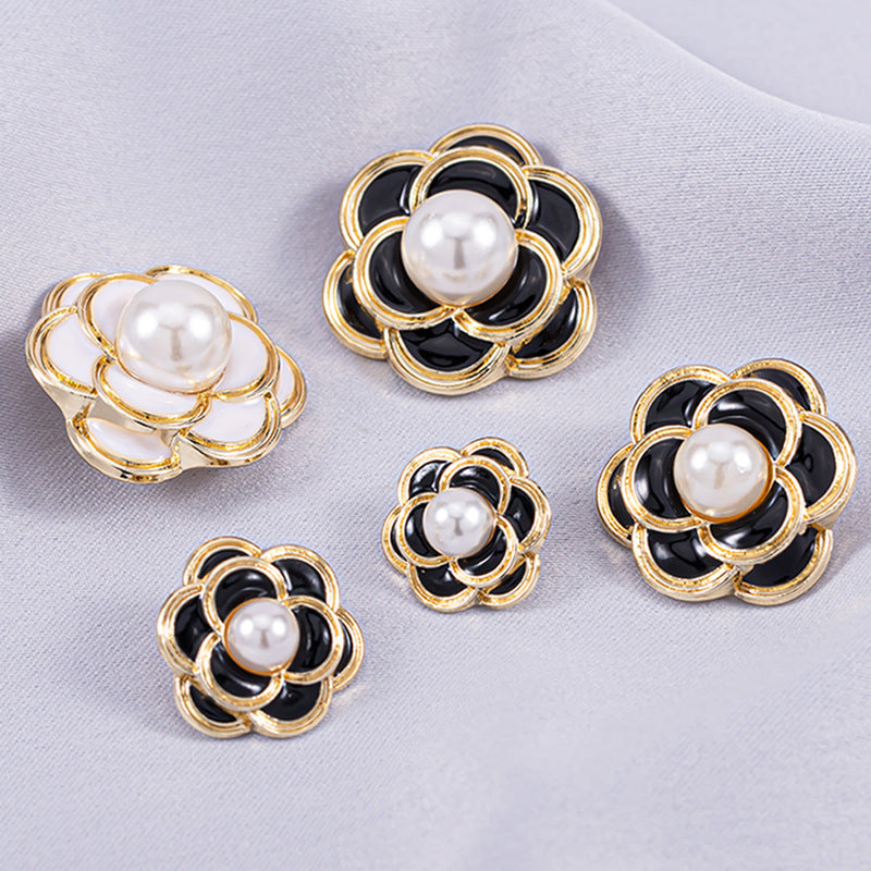 15-25mm Камелия метални и перлени копчета с краче, пакет от 20 броя