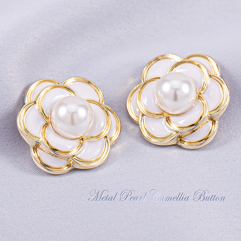 Тези метални и перлени копчета с дизайн камелия с размер 15-25мм и с шип са наистина изискано допълнение към всяко облекло. Комбинацията от метал и перла създава луксозен и елегантен вид.