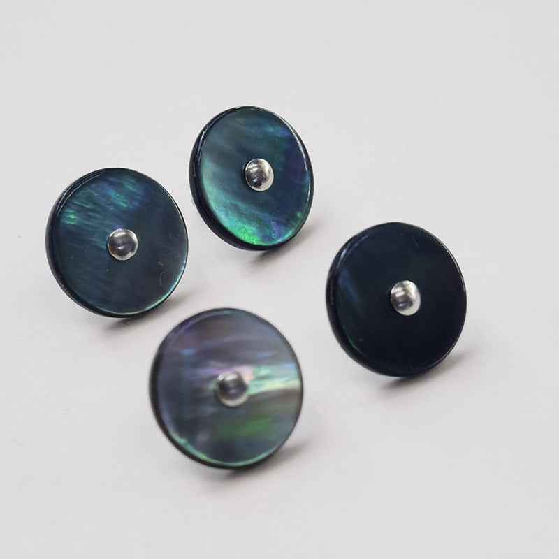 Подчертайте висококласните си дизайни с тези изискани черни копчета от майчина перла 16L (10 мм) и 18L (11 мм), с издръжливи метални шанкове за професионално изработване на облекла. Всяко копче показва естествения иридесцентен блясък на истинска черна устрица с модерен дизайн на задния шанк.