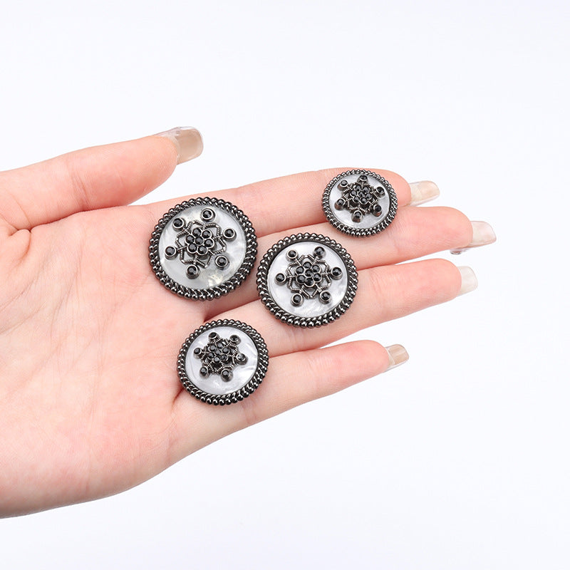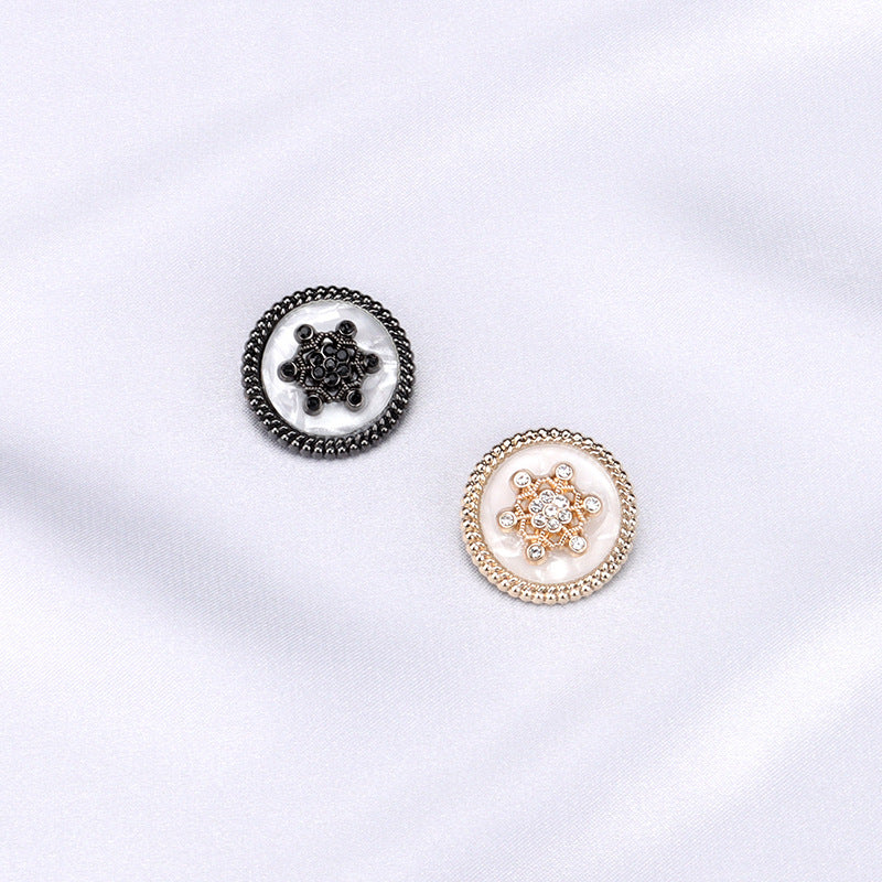 Тези копчета с размери 18/20/23/25 мм са луксозно допълнение към вашето облекло. Изработени от висококачествен метал в златисти и черни цветове, те са както издръжливи, така и стилни. Кръглата форма им придава класически вид, който пасва на различни видове връхни дрехи. Вграждането на кристали ги прави наистина привличащи вниманието. Кристалите блестят при всяко движение, добавяйки нотка блясък и изтънченост. Независимо дали е шикозно палто, модерен топ или елегантно кожено палто, тези копчета ще подобрят цялостната естетика. Те са перфектни за тези, които искат да направят изявление с облеклото си, придавайки усещане за лукс и ексклузивност. Различните налични размери осигуряват гъвкавост за различни дизайнерски нужди, гарантирайки перфектно прилягане за вашия уникален артикул.