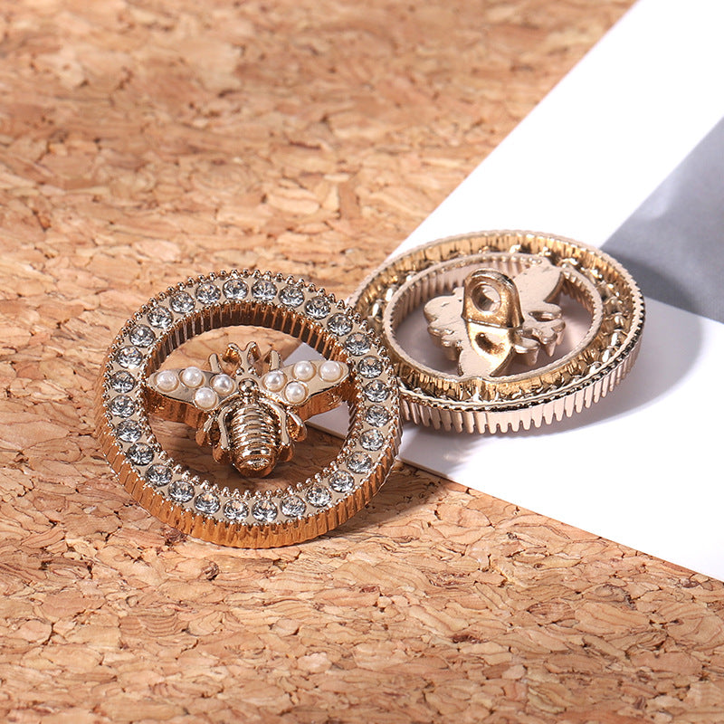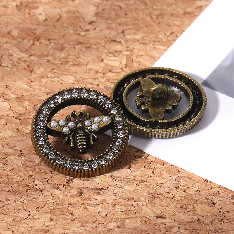 Независимо дали искате да добавите щипка чар към ежедневния си гардероб или да направите впечатление на специално събитие, тези метални копчета с пчели и кристали са перфектният избор. Подобрете стила си с тези красиви и привличащи вниманието копчета.