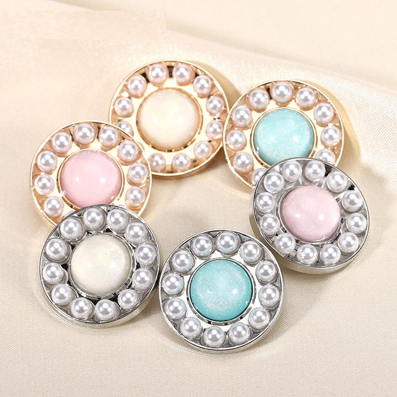 18-25мм кръгли метални копчета с перлен смолист ефект с халка 10 бр.