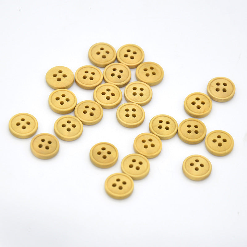 18L естествен цвят дървени кръгли бутони с четири отвора 100 бр.