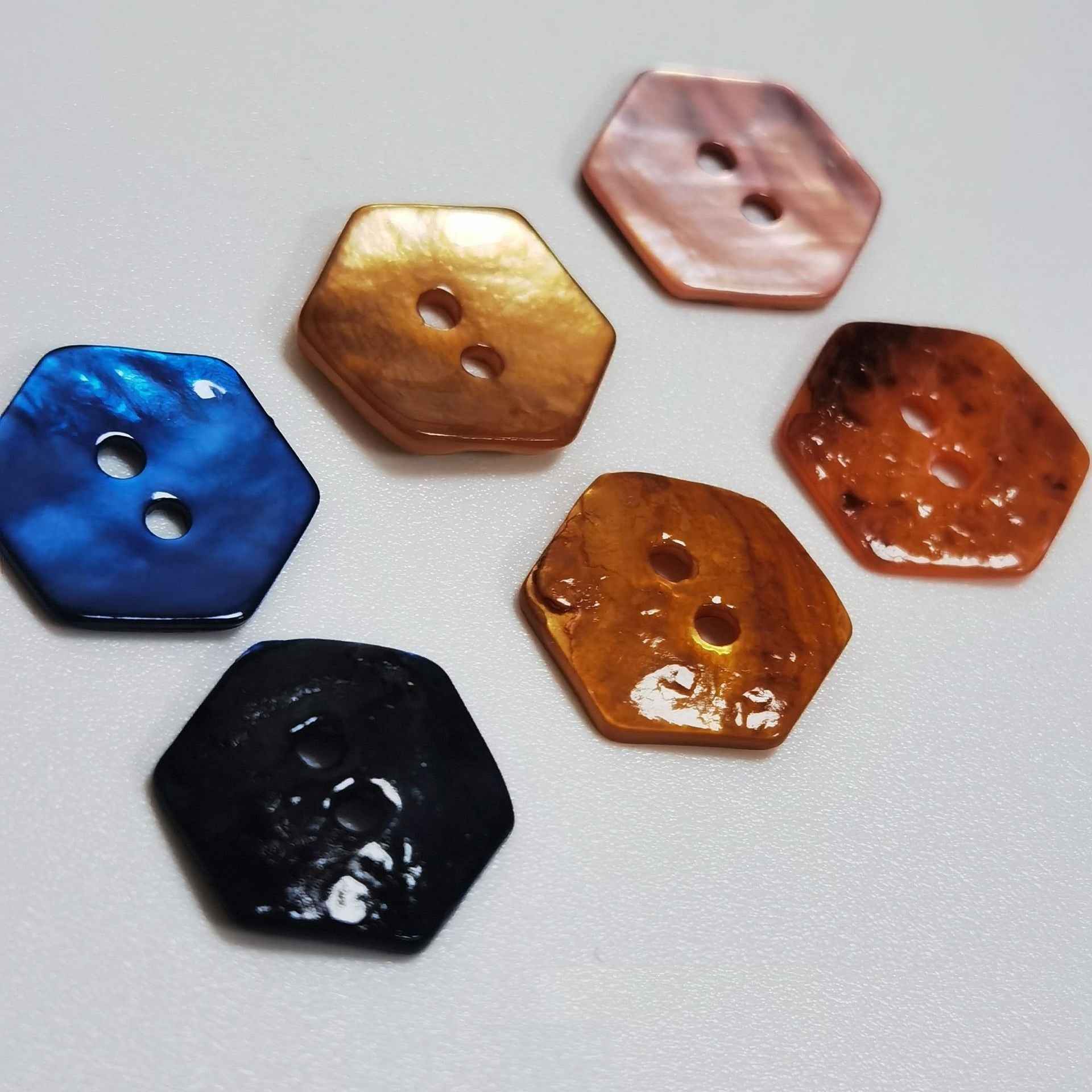 20L Шестоъгълни 2-Отворни Бутони от Перлена Мида за Ръкоделие, Опаковка от 99 Броя