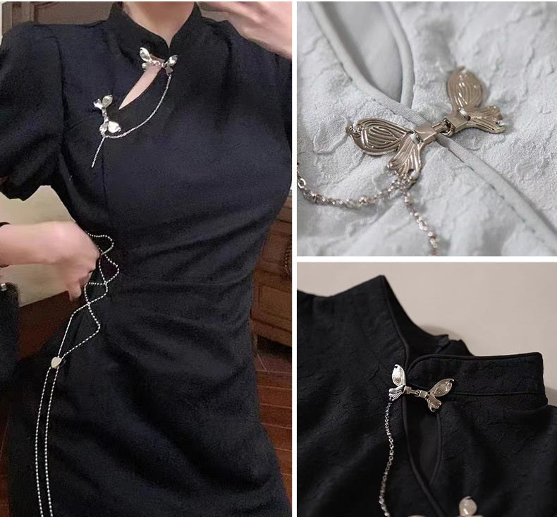 Тези 4.8cm копчета в китайски стил са специално проектирани да добавят щипка елегантност и чар към чонсам. Изработени от висококачествен цинков сплав, те имат деликатна форма на пеперуда, символизираща грация и красота в китайската култура. Фините детайли на крилата на пеперудата са прецизно изработени, с плавни линии и лъскаво покритие. Дизайнът с кука не само осигурява лесно закопчаване, но и добавя уникален декоративен елемент. Тези копчета са перфектни за подобряване на цялостната естетика на чонсам, независимо дали е за традиционно официално събитие или модерна интерпретация на класическата рокля. Те могат да превърнат обикновен чонсам в зашеметяващо произведение на изкуството, позволявайки на носещия да покаже личния си стил с щипка китайско наследство. С тяхната издръжливост и изящен дизайн, те са задължителни за тези, които ценят красотата и майсторството на китайската мода.