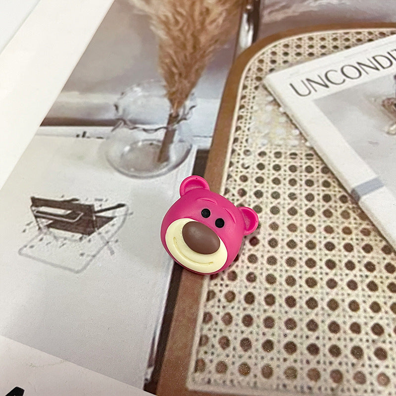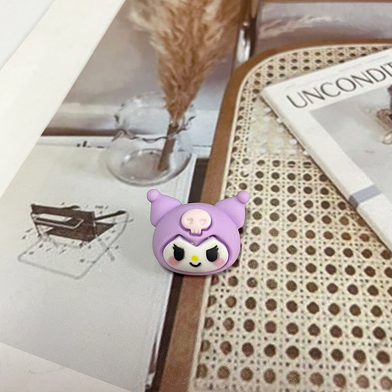 Цветни пластмасови копчета с ушички с анимационни дизайни за деца - Kuromi, Strawberry Bear, котешка лапа, сърце, лале, слънчоглед, комплект от 49 бр. (7 смесени стила)