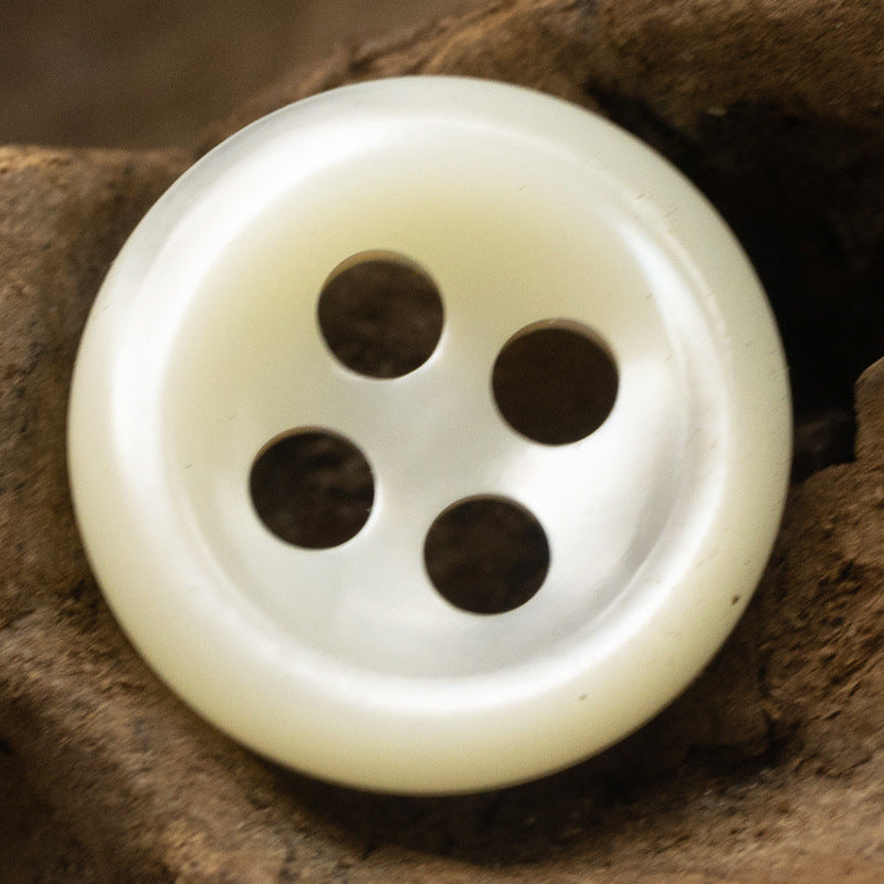 Тези бежови копчета от черупка са чудесен избор за добавяне на щрих елегантност и естествена красота към ретро копринени ризи и рокли от тутов коприн. Изработени от истински черупки, те притежават уникален блясък и текстура, които са както завладяващи, така и луксозни.