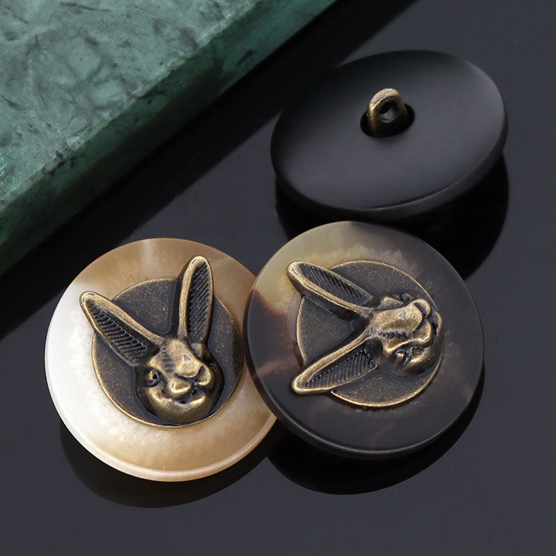 Черни бежови кафяви копчета с метална смолиста основа с форма на глава на заек, пакет от 15 броя