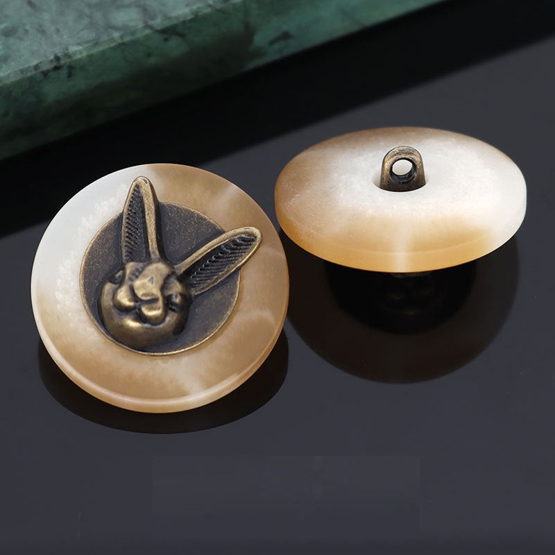 Тези копчета 18/25мм са прекрасно допълнение към вашето облекло. Комбинирайки метал и смола, те са издръжливи и добре изработени. Копчетата имат очарователни дизайни с глави на зайчета, които добавят нотка на сладост и игривост. Цветовата палитра от черно, бежово и кафяво ги прави универсални и лесни за съчетаване с различни тъкани. Черното придава елегантен и мистериозен вид, бежовото - меко и топло усещане, а кафявото - естествен чар. С дръжки, те са удобни за зашиване върху различни дрехи като палта, пуловери или елеци. Тези копчета не са само функционални, но и декоративни. Независимо дали за детско или за възрастно облекло, те подобряват цялостния стил, правейки носещия ги да изпъква с уникален и модерен акцент, вдъхновен от тези прекрасни копчета с глави на зайчета.