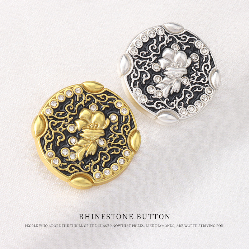 Тези копчета с размери 18/20/23мм са перфектна комбинация от традиционен чар и съвременен лукс. Копчетата са изработени от висококачествен метал в златисти и сребристи тонове, придаващи им богат и елегантен вид. Гравираните върху тях китайски орнаменти са сложни и значими, носещи същността на китайската култура. Всеки орнамент разказва история, добавяйки уникален културен привкус към копчетата. Това, което ги прави още по-блестящи, са инкрустираните кристали. Кристалите са внимателно подбрани и поставени, създавайки блестяща искрица, която привлича погледа. Дръжките на копчетата ги правят лесни за закрепване към различни дрехи. Идеални за традиционно китайско облекло или модерни модни изделия с китайски елементи, тези копчета не са само функционални, но и декоративни, подобрявайки цялостната естетика на облеклото.