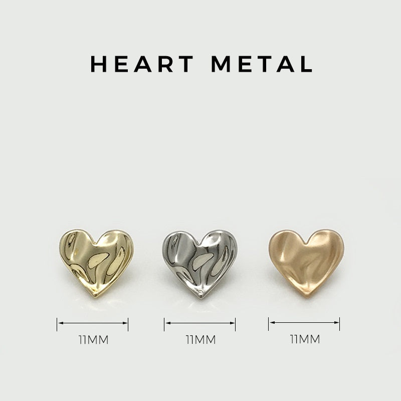Тези копчета са стилен и практичен избор за ежедневни връхни дрехи. Налични в различни размери от 11мм до 22.5мм, те имат уникален вдлъбнато-изпъкнал дизайн на сърце, който добавя чар и индивидуалност. Металната конструкция осигурява издръжливост и елегантно покритие, което ги прави подходящи за различни видове платове. "Кракчето" на всяко копче позволява лесно шиене върху якета, осигурявайки сигурно закрепване. Независимо дали е дънково яке за небрежен вид или леко ветроустойчиво яке за дейности на открито, тези копчета ще подобрят цялостната визия. Формата на сърцето придава топло и приветливо усещане, а качественото изработване ги прави забележителни. Те не са само функционални, но и декоративни, помагайки ви да персонализирате и обновите ежедневния си гардероб с модерен и привличащ вниманието детайл.