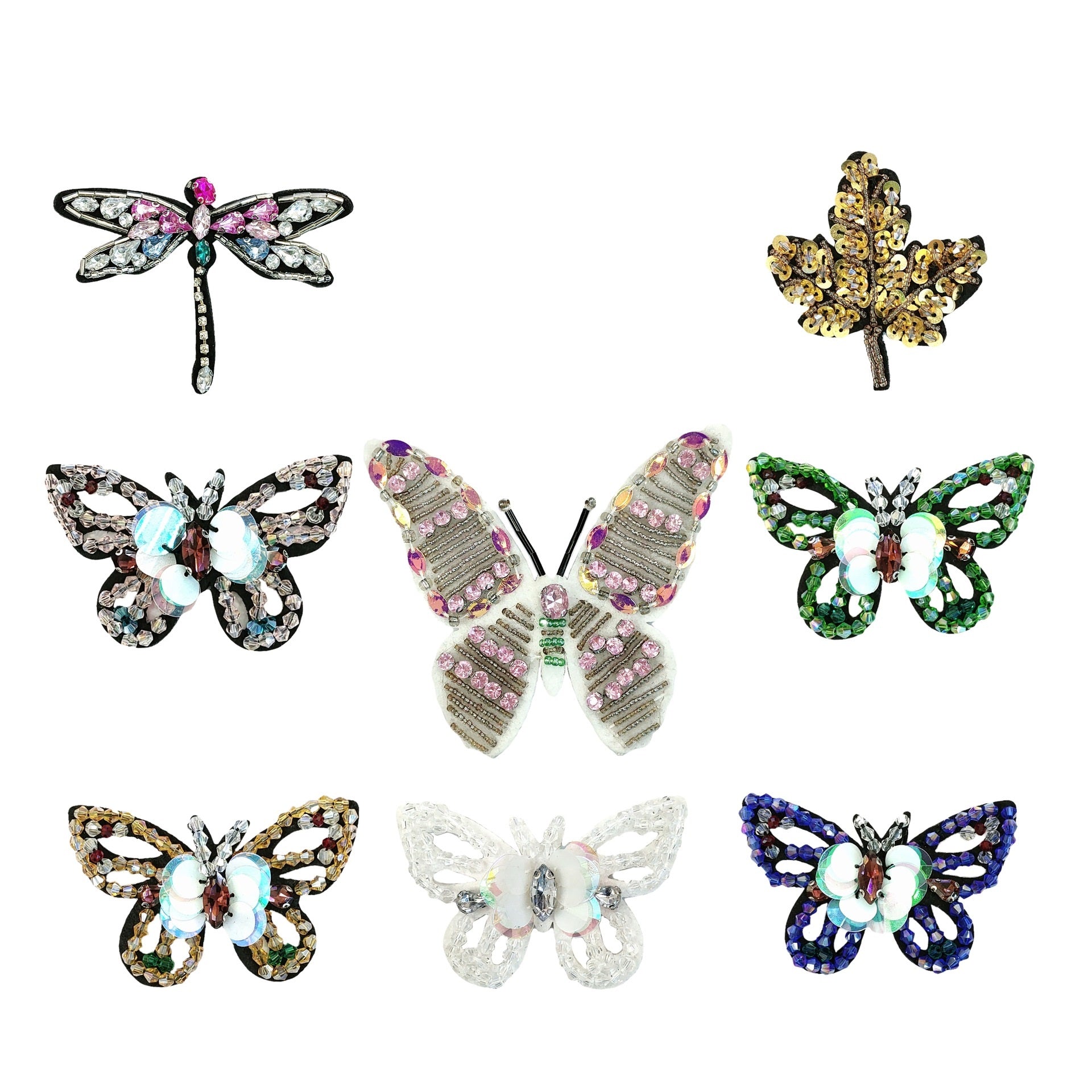 Апликация с кристални пеперуди и пайети - Блестящо украшение за дрехи и занаяти, опаковка от 8 броя