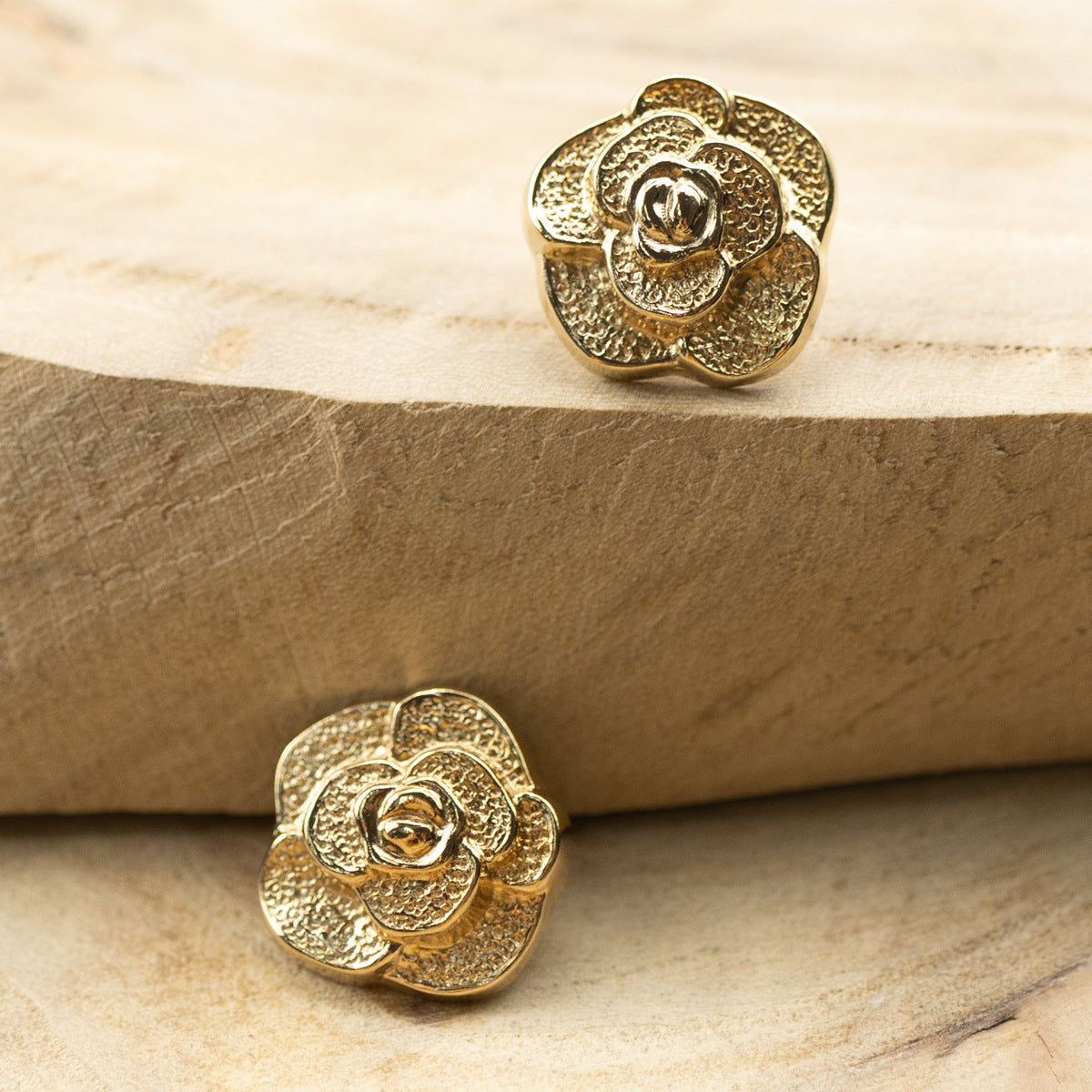 Тези копчета са изработени с фини детайли, с деликатен дизайн на роза в блестящ златен завършек. Металният материал им придава здрава и дълготрайна издръжливост, а златистият цвят добавя нотка лукс.