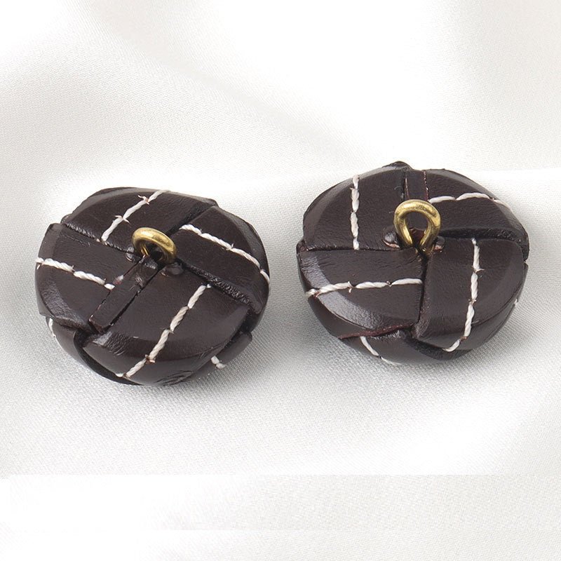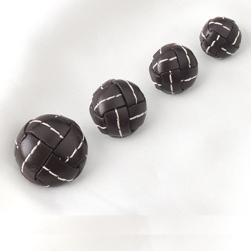 Тези ръчно тъкани футболни копчета от естествена кожа с кафяви шевове с размери 15 - 25 мм са уникално и стилно допълнение към всеки висококачествен ретро вълнен костюм или палто. Материалът от естествена кожа придава на тези копчета луксозно усещане и издръжливост. Черният шев добавя нотка елегантност и изтънченост. Формата на футбол е както игрива, така и уникална, което прави тези копчета да изпъкват сред традиционните копчета. Ръчно тъкани с грижа, тези копчета са доказателство за майсторство и качество. Те са перфектни за добавяне на винтидж чар към гардероба ви. Нека тези копчета бъдат акцентът на вашия тоалет и покажат вашия стил и вкус.