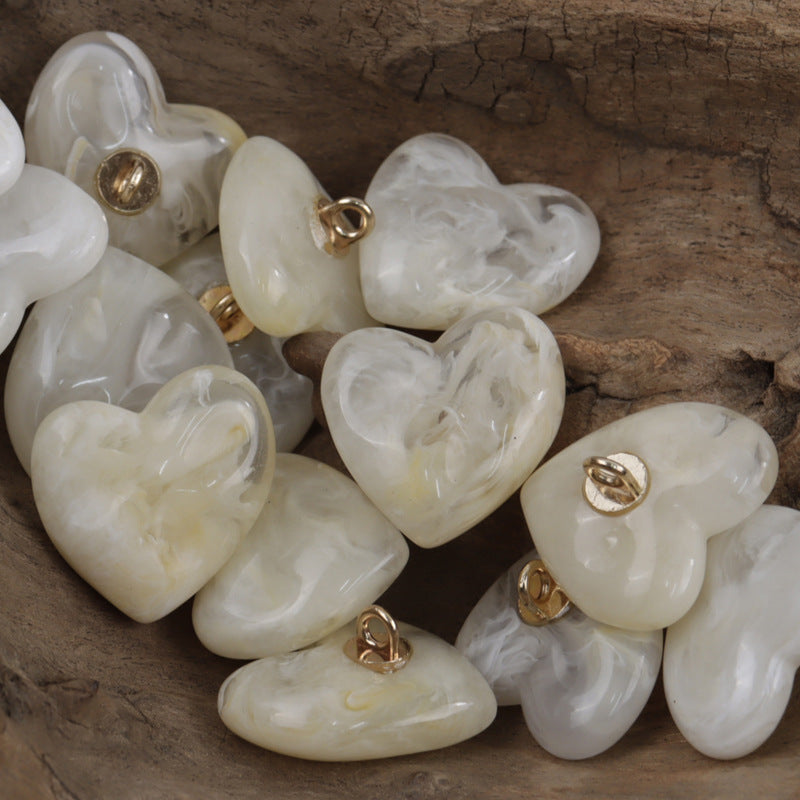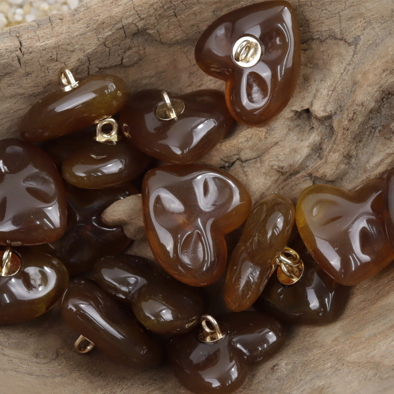 Тези очарователни копчета са изработени от смола в красив кехлибарен нюанс, който им придава топъл и привлекателен вид. Оформени като сърце, те добавят нотка любов и сантименталност към всеки артикул, на който се използват.
