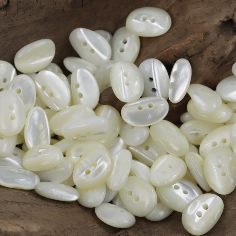 Нередовни овални кремаво бели светло жълти копчета от черупка за ризи 10 бр.