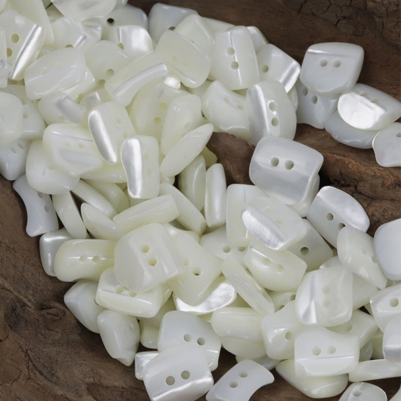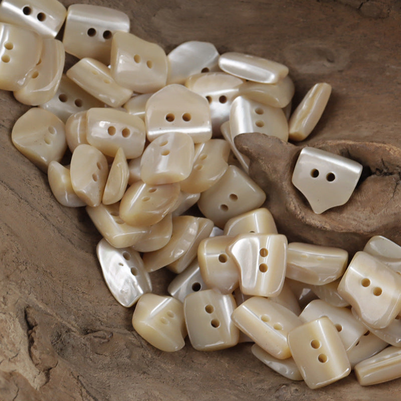 Кремаво-белият цвят е мек и неутрален, което го прави лесен за съчетаване с различни тъкани и цветове на ризи. Неправилната овална форма придава на тези копчета отличителен вид, който ги отличава от традиционните кръгли копчета.