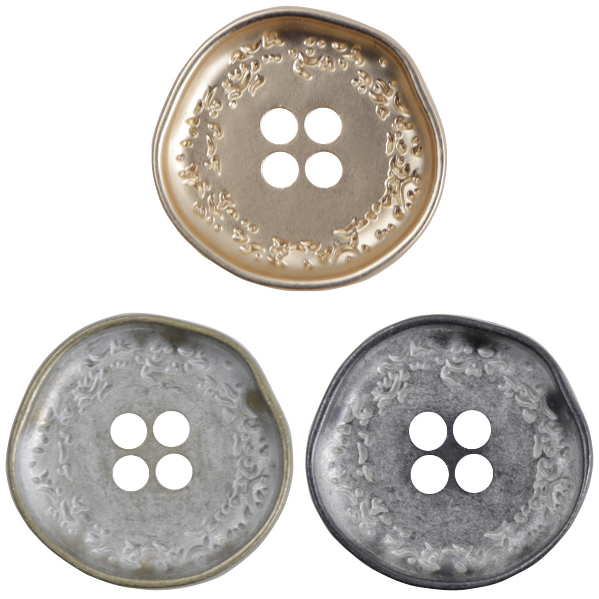 Неправилната форма на копчетата наподобява житни класове, придавайки им естествен и рустикален вид. Металният материал осигурява издръжливост и елегантен външен вид.