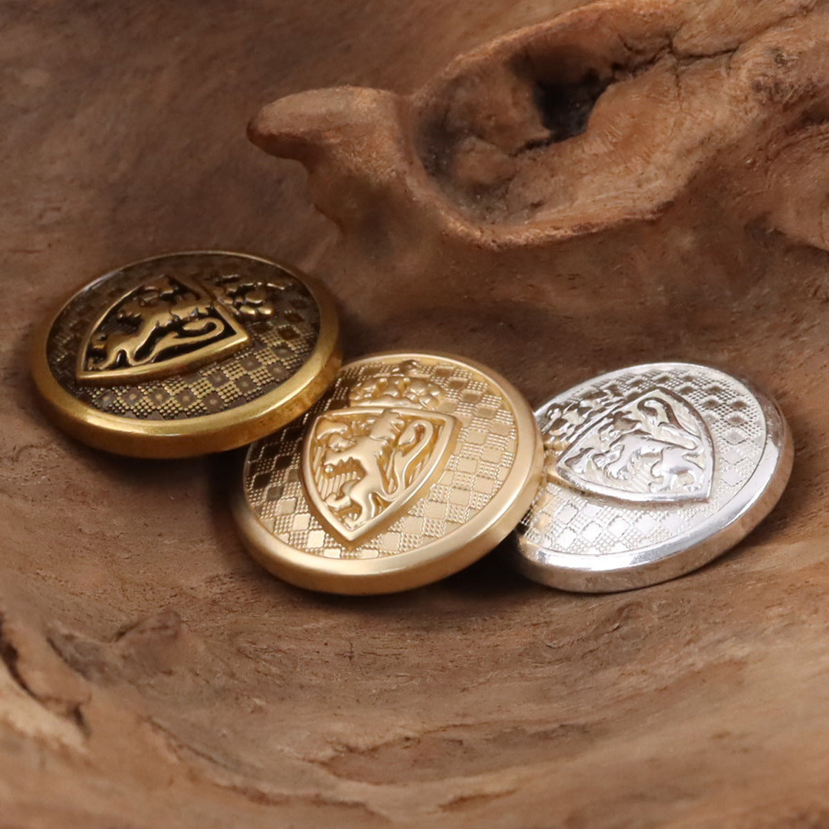 Тези метални копчета Lion Shield Crown Element са забележителен избор за внасяне на усещане за кралска елегантност и смел характер в ретро американските колежански костюми. Дизайнът съчетава три мощни и символични елемента - лъва, щита и короната - създавайки копче, което е както визуално впечатляващо, така и богато на значение.