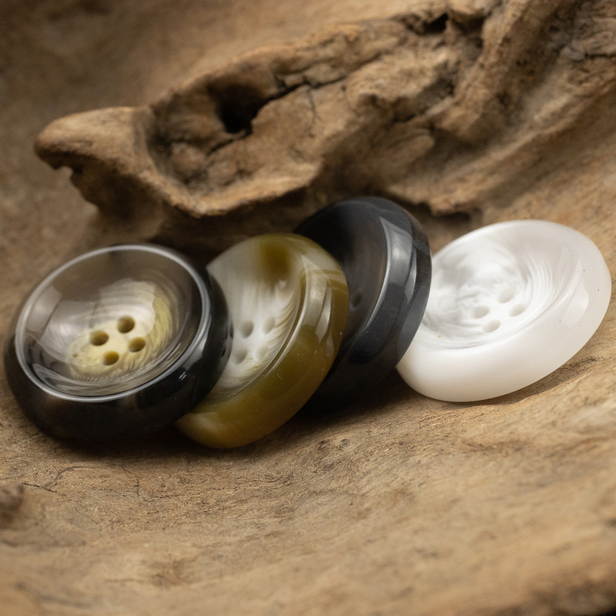 Подчертайте визията на вашите костюми с тези елегантни кръгли четиридупкови копчета с форма на купа от смола. Тези копчета са проектирани да добавят щипка изтънченост и стил към вашето официално облекло.