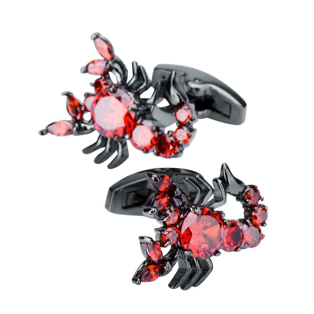 Уникални маншетни копчета с червен циркон скорпион – Блестящи аксесоари за мъжки ризи