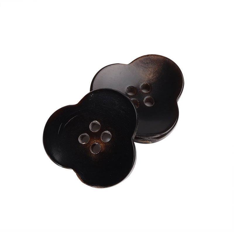 23mm Coffee-Colored Flower-Shaped 4-Hole Horn Coat Buttons
