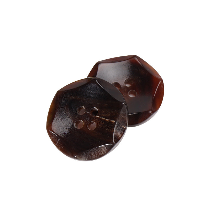 23mm Hexagonal Four-Hole Coffee-Colored Horn Buttons 10pcs