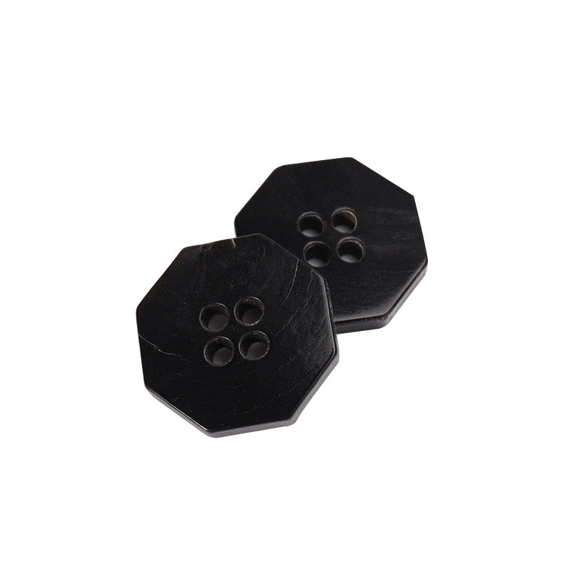 20mm Octagonal Four-Hole Black Horn Buttons 12PCS