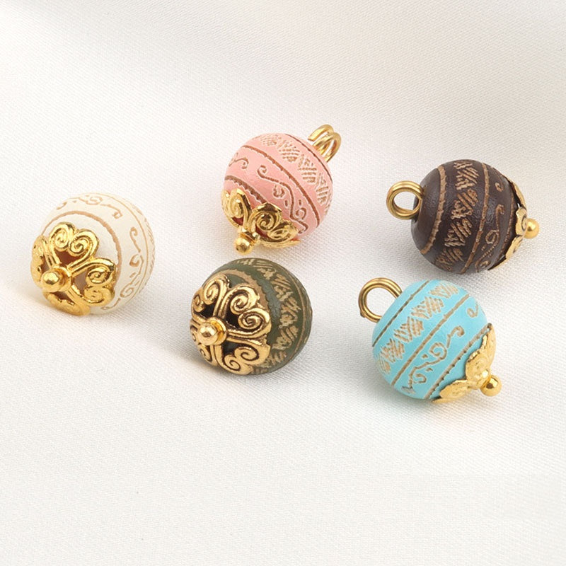10mm Baking Finish Laser-Carved Pattern Wood Bead Buttons with Metal Shanks 20pcs