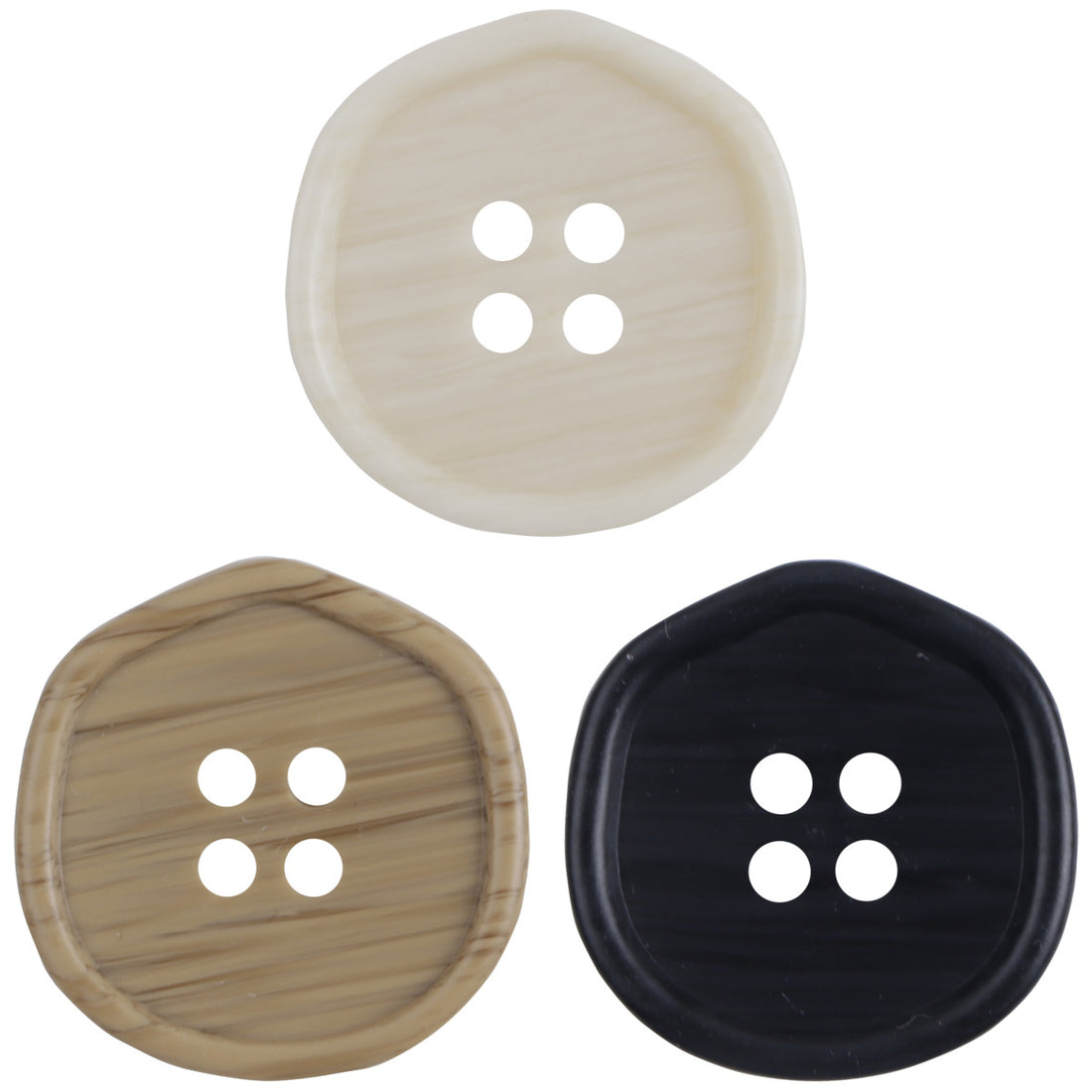 Bílý, černý a khaki polygonální pryskyřičné knoflíky s dřevěným vzorem 30 kusů